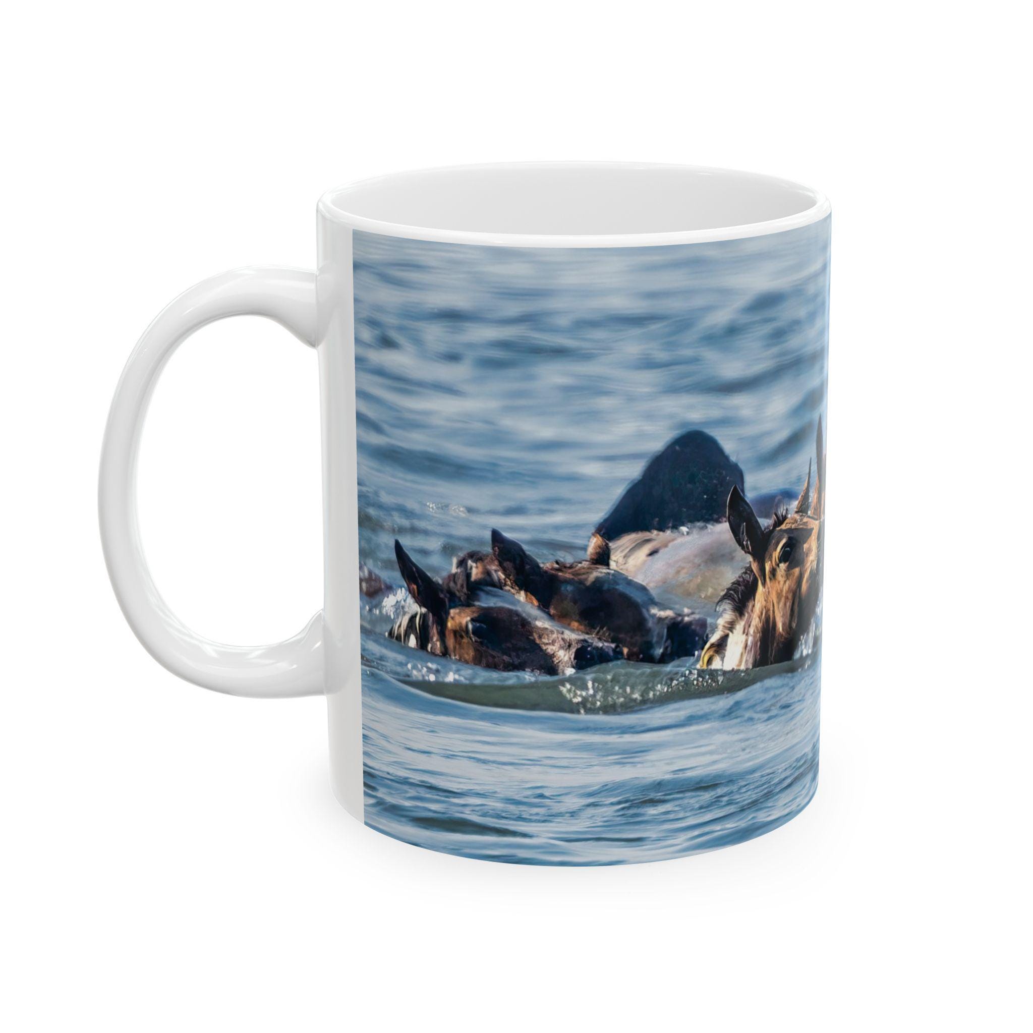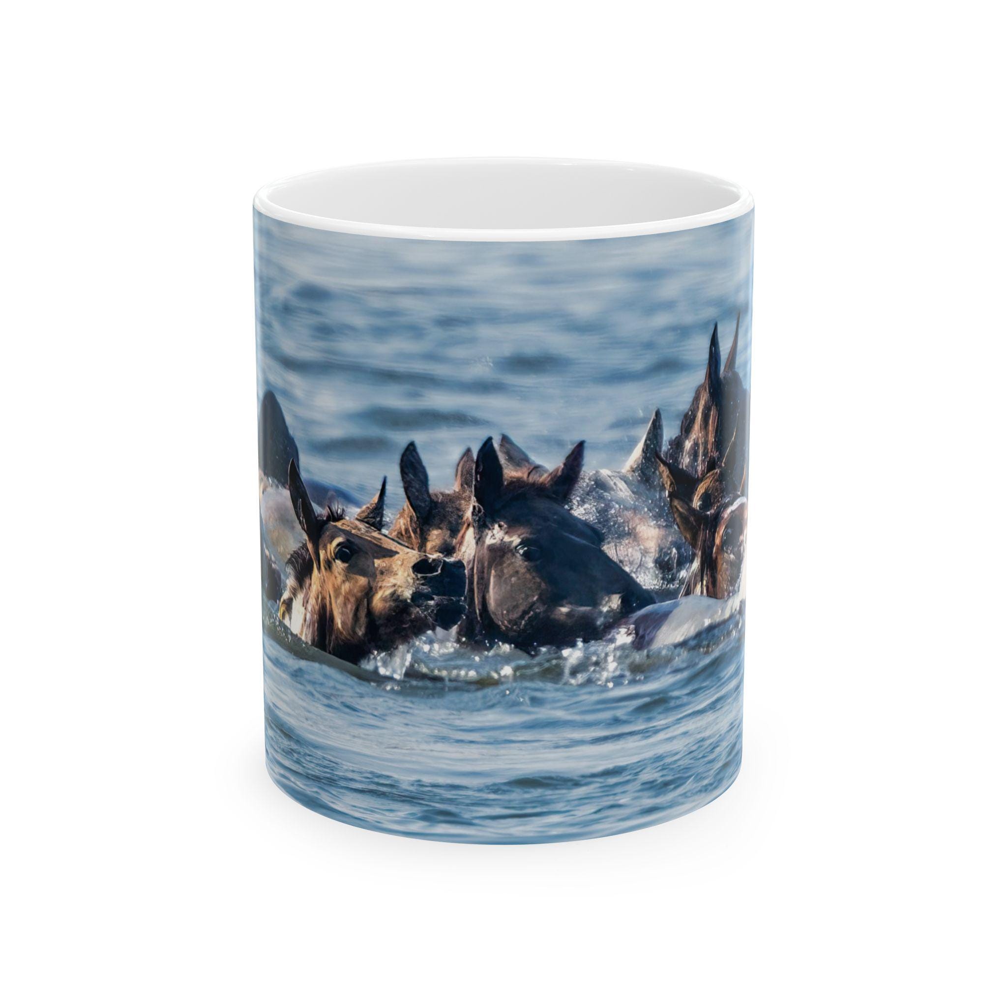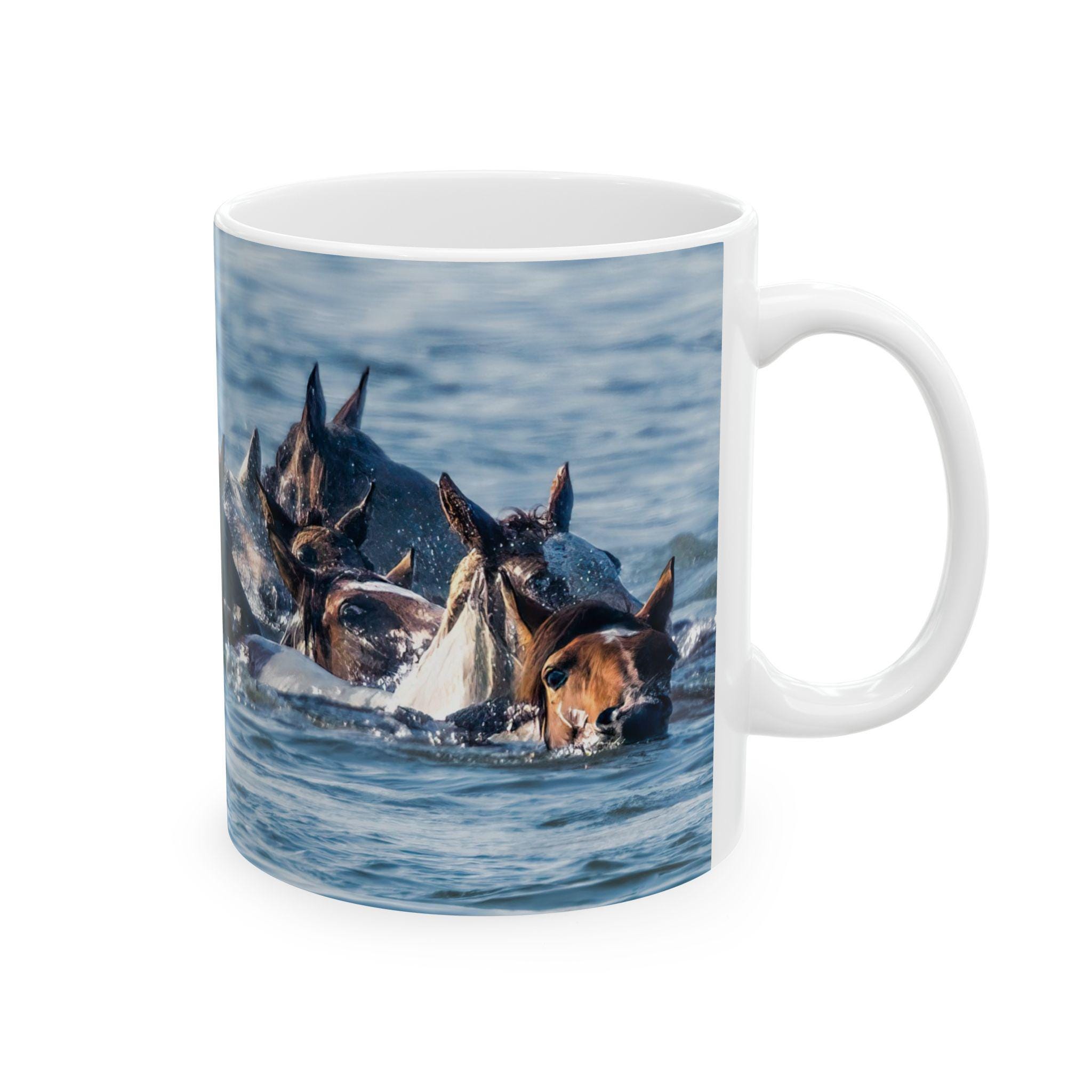 Introducing a delightful ceramic mug commemorating the 100th Annual Pony Swim from Assateague Island to Chincoteague Island. With its glossy finish and vibrant designs, this mug is perfect for anyone who enjoys sipping their favorite beverages in style. Whether you're starting your morning coffee or unwinding with a cozy tea in the evening, this mug sets a cheerful atmosphere. Ideal for animal lovers, this mug makes a thoughtful gift for birthdays, holidays, or as a cute surprise for a friend just because. Celebrate special moments or enjoy a casual day with this functional yet trendy addition to your kitchenware.